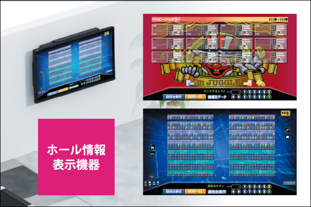 まずは直接ホールで調べる方法。現在は殆どのホールに設置されている「ホール情報表示機」。全台の情報を一覧で見ることが出来るので、傾向を調べるのに便利です。